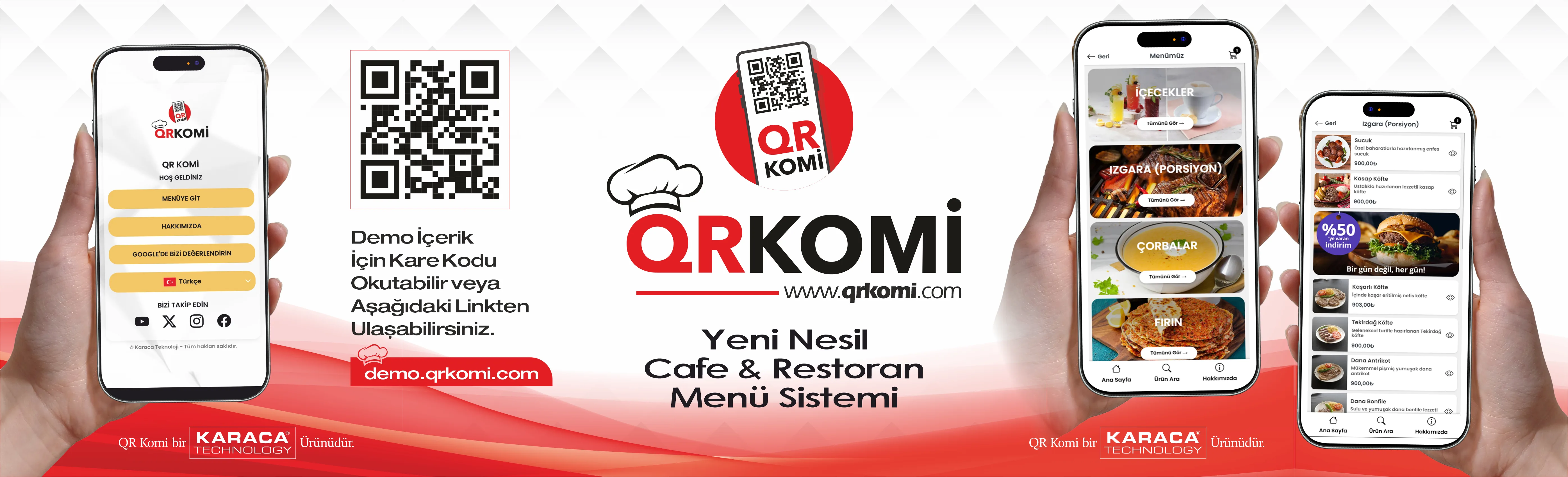 With the rapid advancement of the digital era, traditional printed menus are being replaced by contactless, fast, and easily accessible QR menus. QR Komi, developed by Karaca Technology, offers a modern digital menu system specially designed for restaurants, cafes, hotels, and other food and beverage businesses. Now, your customers can instantly access your updated menu simply by scanning a QR code with their phone camera—no app download required.